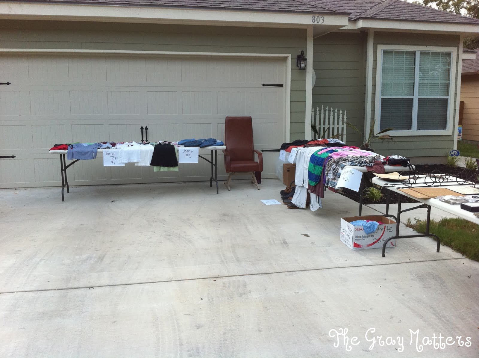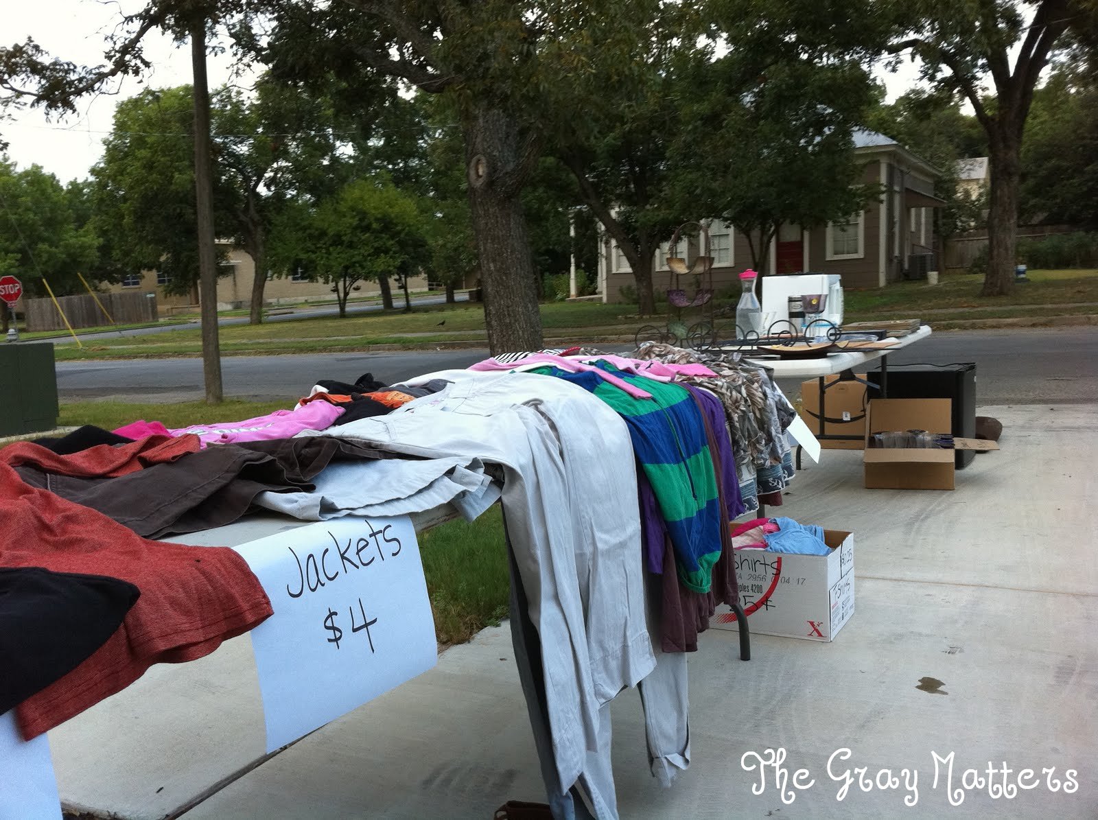 The second big difference was what sold. Generally, my clothes are the first things to go. Not today… all the junk was gone before any clothes even sold. Fortunately, we made some money and didn’t have much left to donate to Goodwill. I’ll take it!