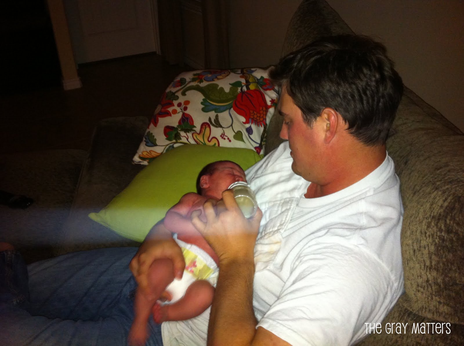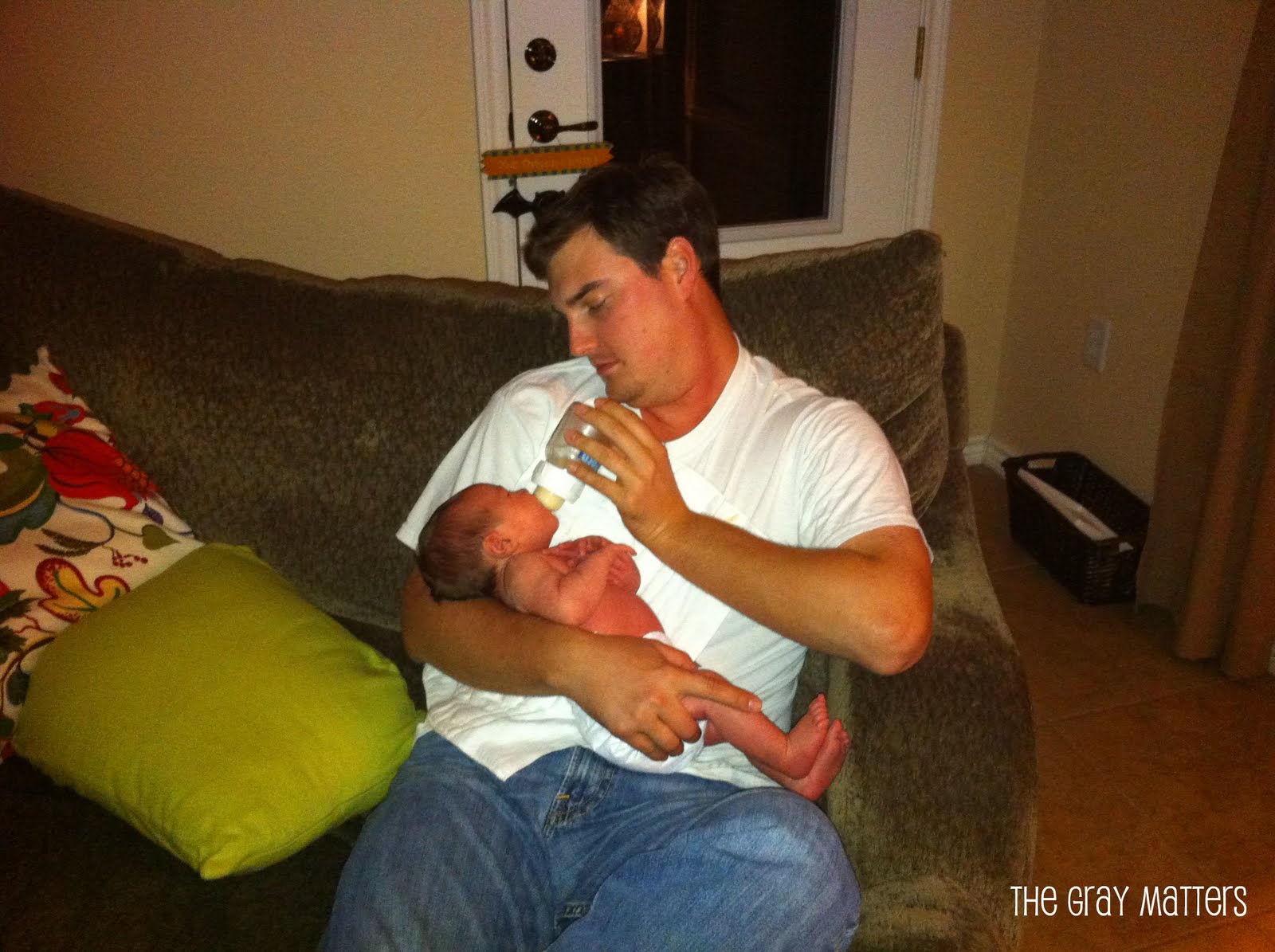 Mr. Gray got to get in on the feeding action with Baby Gray’s first bottle! The doctor told us Friday that since he was obviously nursing well, we could introduce a bottle. Mr. Gray is so involved in all the other aspects of Baby Gray’s care that I wanted him to have the time to bond with him over a feeding or two as well. It was a great time for Baby Gray to just be focused on his daddy.