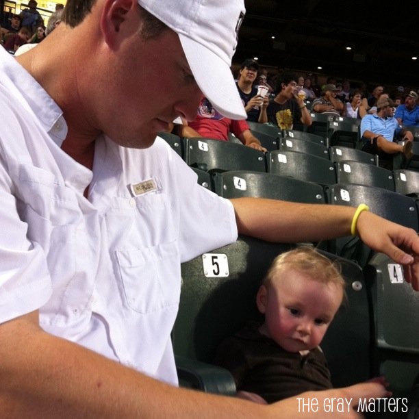 Sadly, we didn’t get to stay for the fireworks. Baby Gray was tired, and it was time to head home. This definitely won’t be our last trip to the ballpark, though!