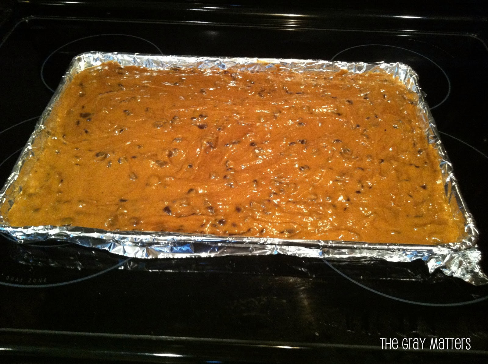 Looking back, I couldn’t remember why I didn’t like pumpkin–or why I thought I didn’t like it. However, when I made these pumpkin brownies a couple of weeks ago (the weekend of Baby Gray’s birthday) I realized why. As we were headed out the door on our way to College Station, I offered Mr. Gray and Annie some of these delicious brownies; I had been eating them all day. Mr. Gray enjoyed his as much as I had, and Annie obliged, but did not like it one bit. It wasn’t that I didn’t like pumpkin, she didn’t like pumpkin so we didn’t have it much growing up. Mystery solved!