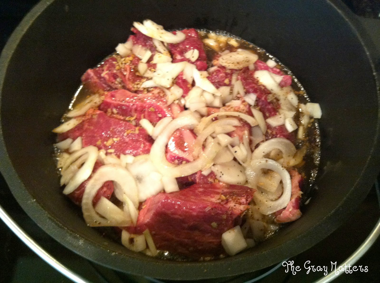 Enough of all the jibber jabber. Oh, except for one more little aside: I don’t buy beef at the grocery store. Pops and Nonna process a calf a couple of times a year (maybe less); that’s where we get our beef. This means a few things for us: usually, our packaged ground meat is more than a pound and steak is readily available.