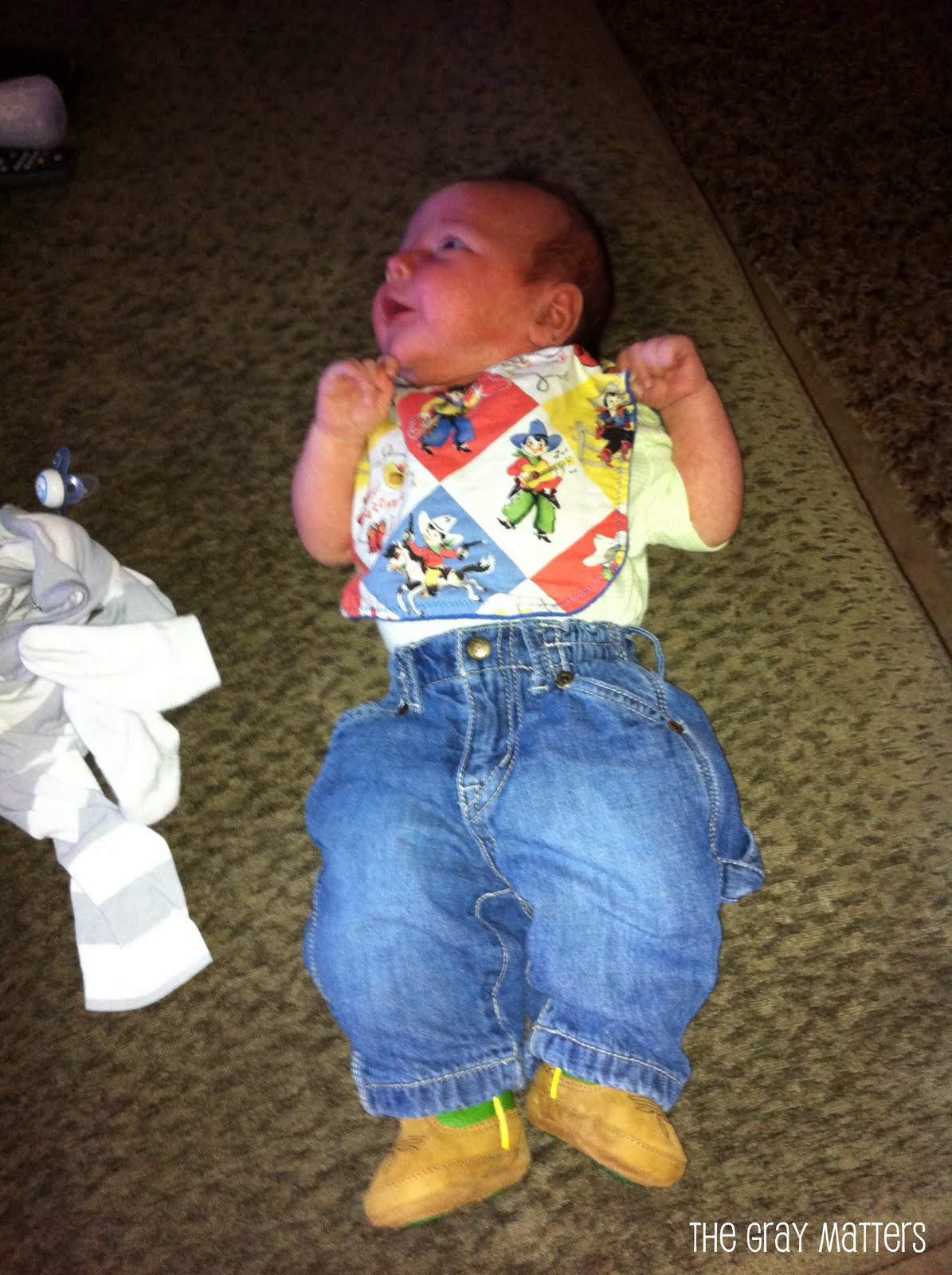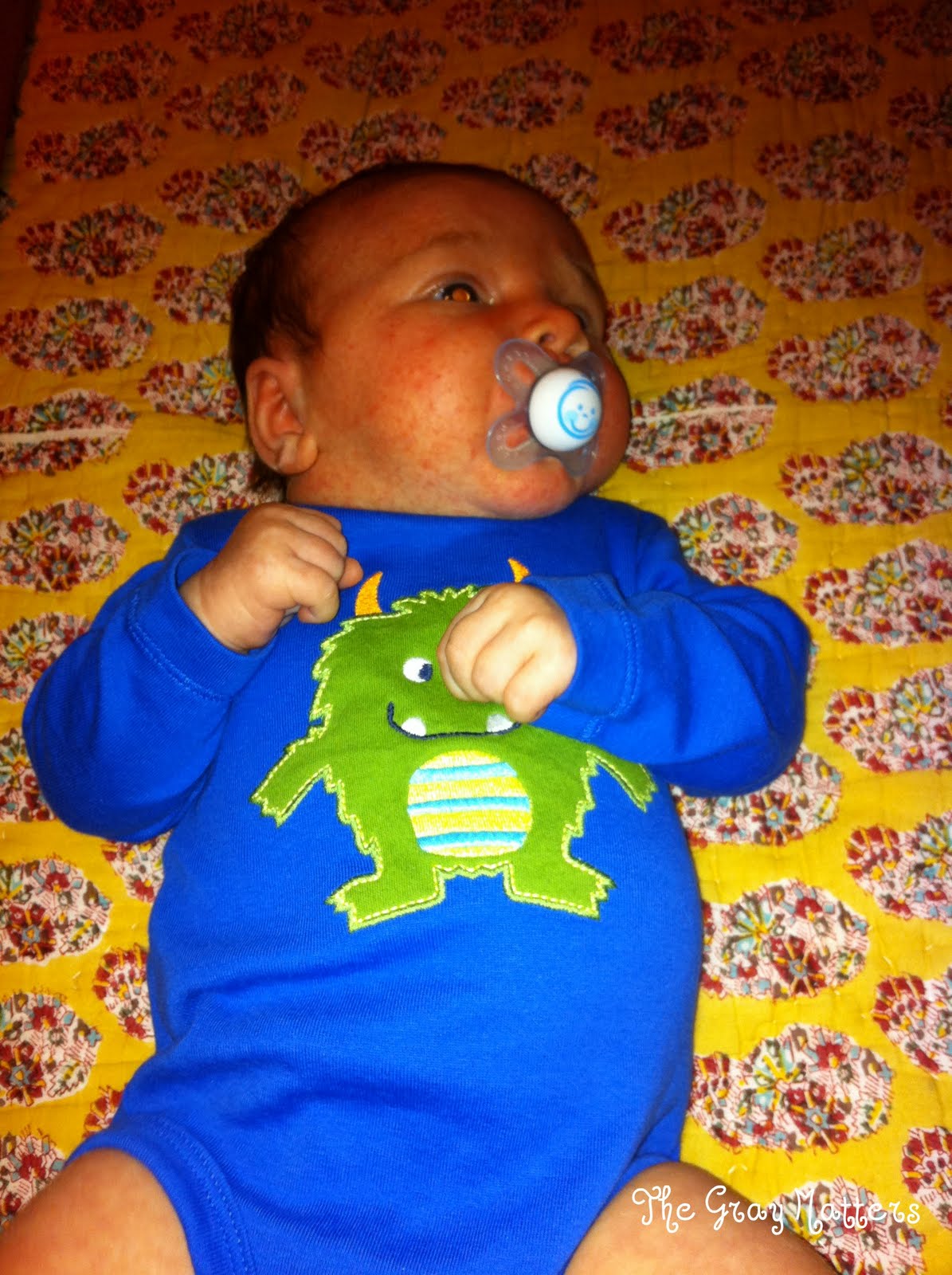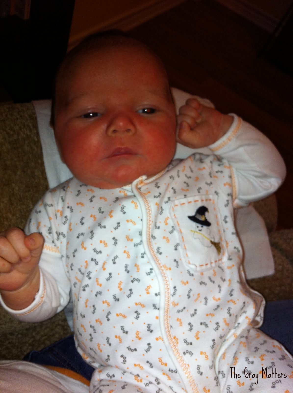 The nurse was very patient as I read through the information and verified what I wanted to know. When I finally gave her the OK, she had me hold Baby Gray while she administered the shot in his right thigh. She was very gentle and kind (as much as you can be when giving an infant a shot). I appreciated that. Baby Gray was such a tough little guy. He cried for a minute, but as soon as she put the band-aid on and Mama kissed him and rocked him, he was content. He got a dinosaur band-aid this time.