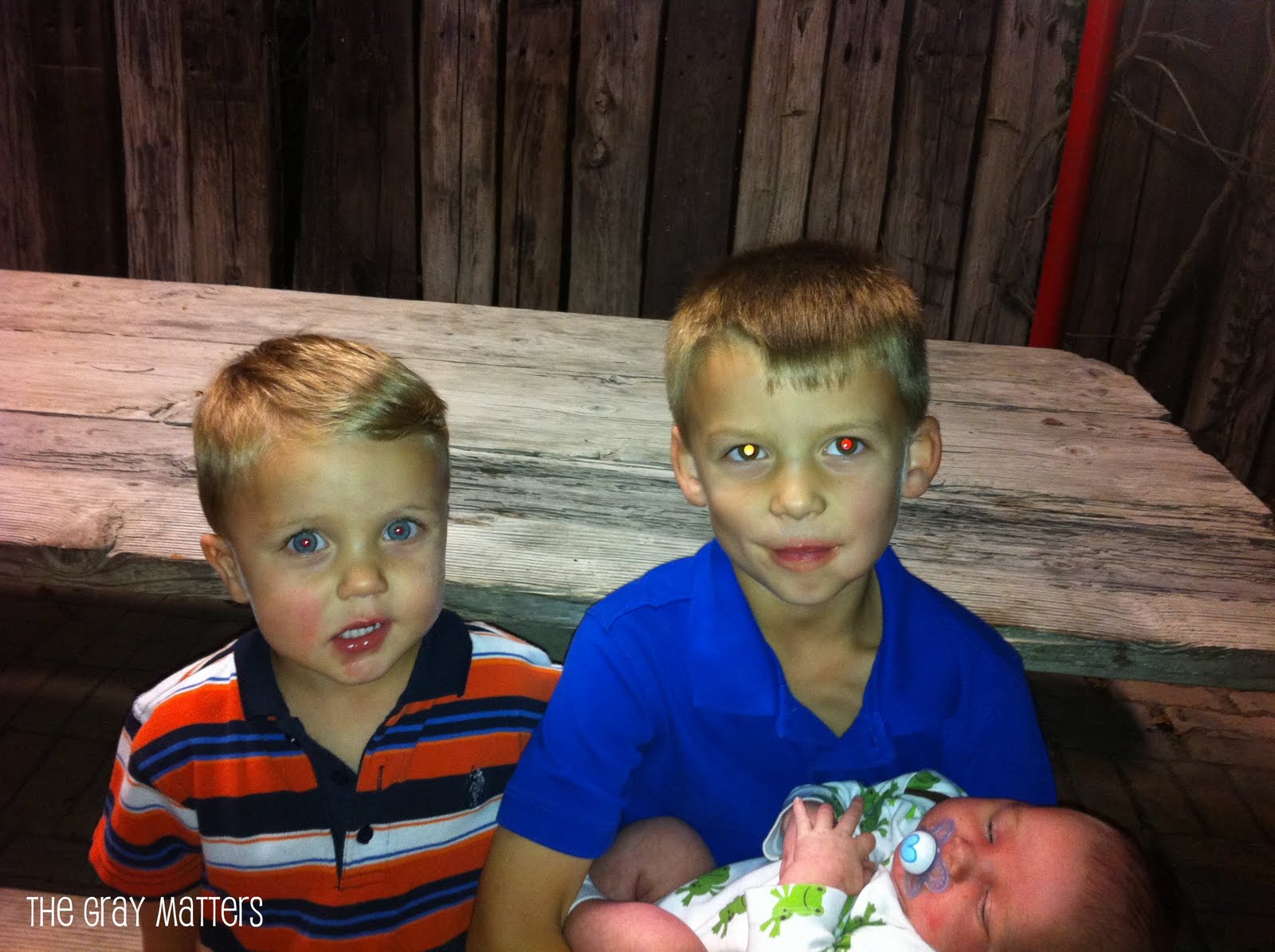 Annie was with us at the doctor, and, as an added comfort, she started a bottle for Baby Gray while I finished asking questions about our two-month vaccinations. I had the nurse bring me all the patient pamphlets for the vaccines that would be used at our next appointment.