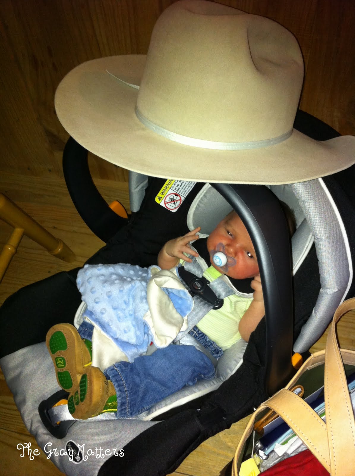 As we headed out of the doctor’s office, I asked the nurse if we could weigh my big boy–12 pounds! Wow! (They didn’t measure his length, but he was laying on a quilt this afternoon, and he stretched all the way across four-six inch quilt blocks! He’s about 24 inches long by those (precise) measurements!